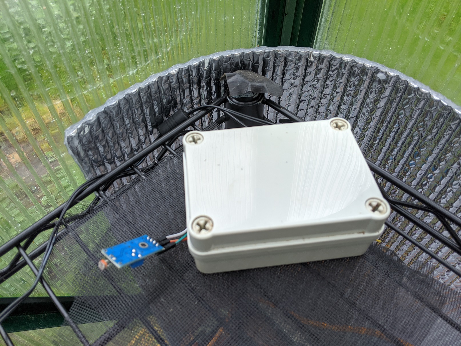 The first system is an environment monitor. It uses a DHT11 sensor to measure temperature and humidity, and an analog light intensity sensor to measure daylight. The light intensity sensor is more sensitive than I'd like, so I positioned it under a shade net. Total cost for this system was $20-$30.